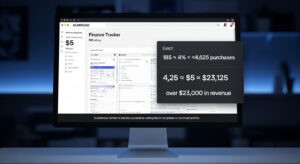 This is looking at this finance tracker that is also selling on Gumroad, while we can’t see how many people have purchased the finance tracker, we do know that approximately 4% of everyone who makes a purchase actually leaves a review. And with 185 ratings, if I do 185 divided by 4%, we can infer that around 4,600 people have actually purchased this finance tracker template. Now, with a minimum listing price of $5 on Gumroad, the seller does have the option to set a minimum price. And the online shopper who purchases it, if they wanted to, could specify a price here higher than that minimum price. But let’s keep things on the conservative side. And let’s say they’ve sold for only $5. Now, 4625* 5 is over $23,000. There is a substantial number of people successfully selling Notion templates on platforms like Gumroad and Etsy.
