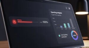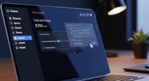 I’ll take a screenshot of this part over here, for example, which I think looks super impressive. And what I will do is head straight over to KD. And on the homepage, if I click on where it says start with AI and then click on where it says remix image by uploading and referencing that screenshot, I can say create an image of a financially savvy budget-conscious saver pointing to this image, which is appearing on his laptop. I’ll click on where it says generate, and it will give me that exact image. a financially savvy, budget-conscious saver, proudly pointing at his laptop, which does feature that exact snippet of that template, our template that we created on his laptop. Guys, if I zoom in, you can see it is literally that exact screenshot. Nothing has been distorted.