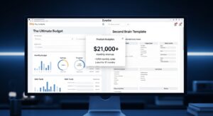 So, example one is a digital product being sold on Etsy. It is a finance tracker or planner. It’s called the ultimate budget. It allows people to sort of type in their monthly budget, track their savings, track their debt, and so on. And if we take a look at how much this particular digital product is making by using a tool that I use called Everbe, what I can do on the left-hand side is click on where it says product analytics. We can see they’re making over $21,000 in revenue every month with around 1,000 monthly sales. And they’ve only been listed for around 17 months. Now, that is for tracking your spending as a finance planner. But take a look at this one. This second brain template over here isn’t so much to do with finance but more so to do with organizing your daily tasks. As it says, guys, it helps you to track your goals, projects, notes, and everything in between.